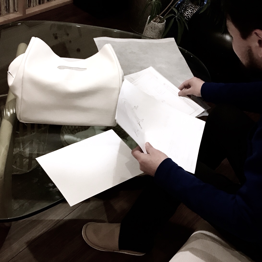 -ボックスレザーバッグが完成しました--スタイリスト杉山さんと進めていたものがついに完成です=スクエアな形にマチを大きくしたポテッとしたフォルムが特徴。ちょっとシンプルなアクセサリーのよう?を意識して...