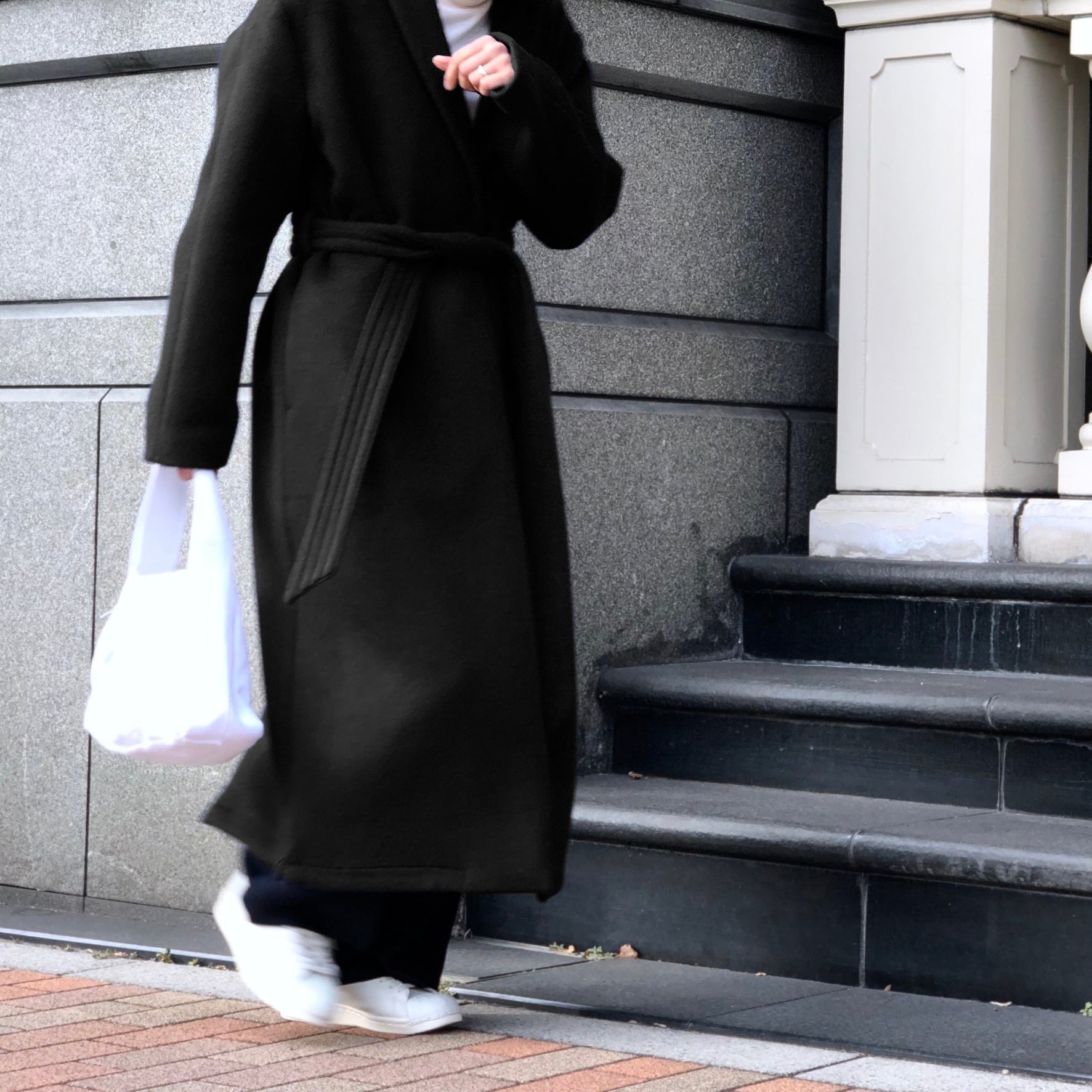 ベルトを結ぶとガウンコートですが、ベルトを外すとチェスターコートになり、前の重なりを大きくすると、ダブルのコートにもなります。その日の気分によってシングル、ダブル、ガウンコートが3wayで選べます。コートには色々な種類が有り、その時のトレンドや気分でスタイリング出来るようにしました。折角がんばって買ったコートも、2年で着れなくなるともったいないです。安いコートを毎年買うよりも、良いコートを長く着る方が豊かな生活が手に入ります。