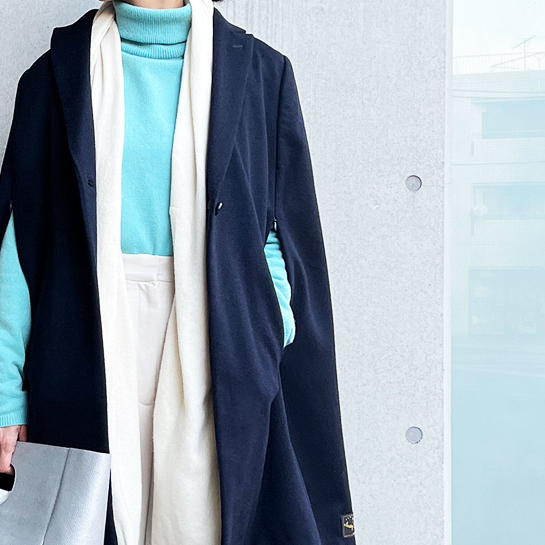 私たちは冬のスタイリングにはタートルネックをお勧めしていますが、チクチクするのが苦手という方もたまにいらっしゃいます。そんな方のために作りたいと思っていたアイテムがやっと完成しました。定番のインナータートルを、より良い品質を求める方のために思い切ってカシミアで編んでもらったのがこちらです。肌に近いものこそカシミアを身につけることで、じわーっと感じる暖かさと、こみ上げてくる嬉しさをより体感していただけたら嬉しく思います。