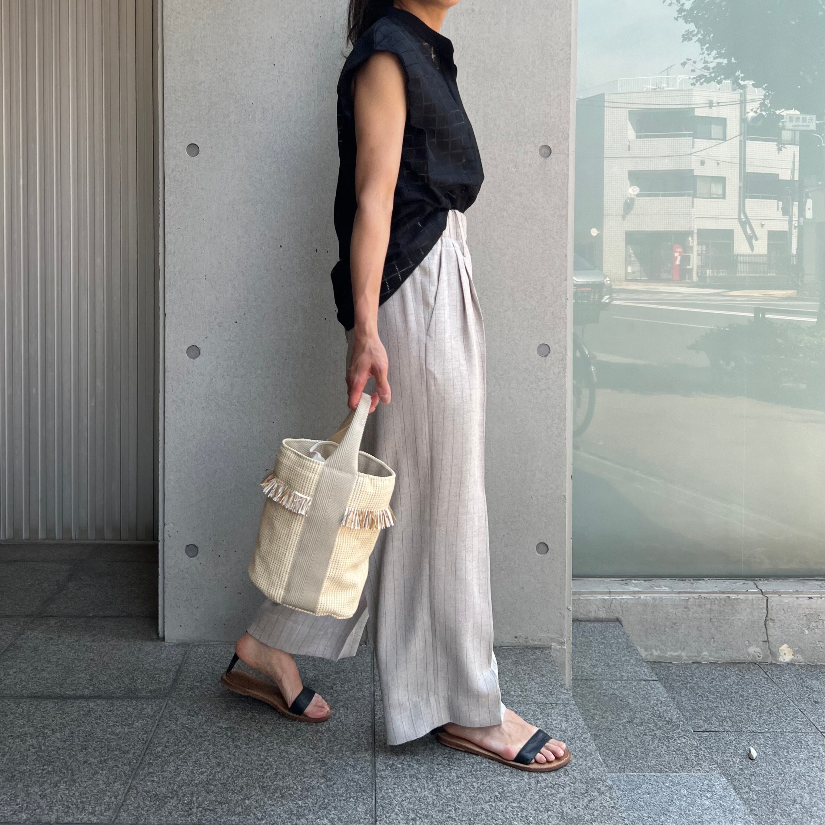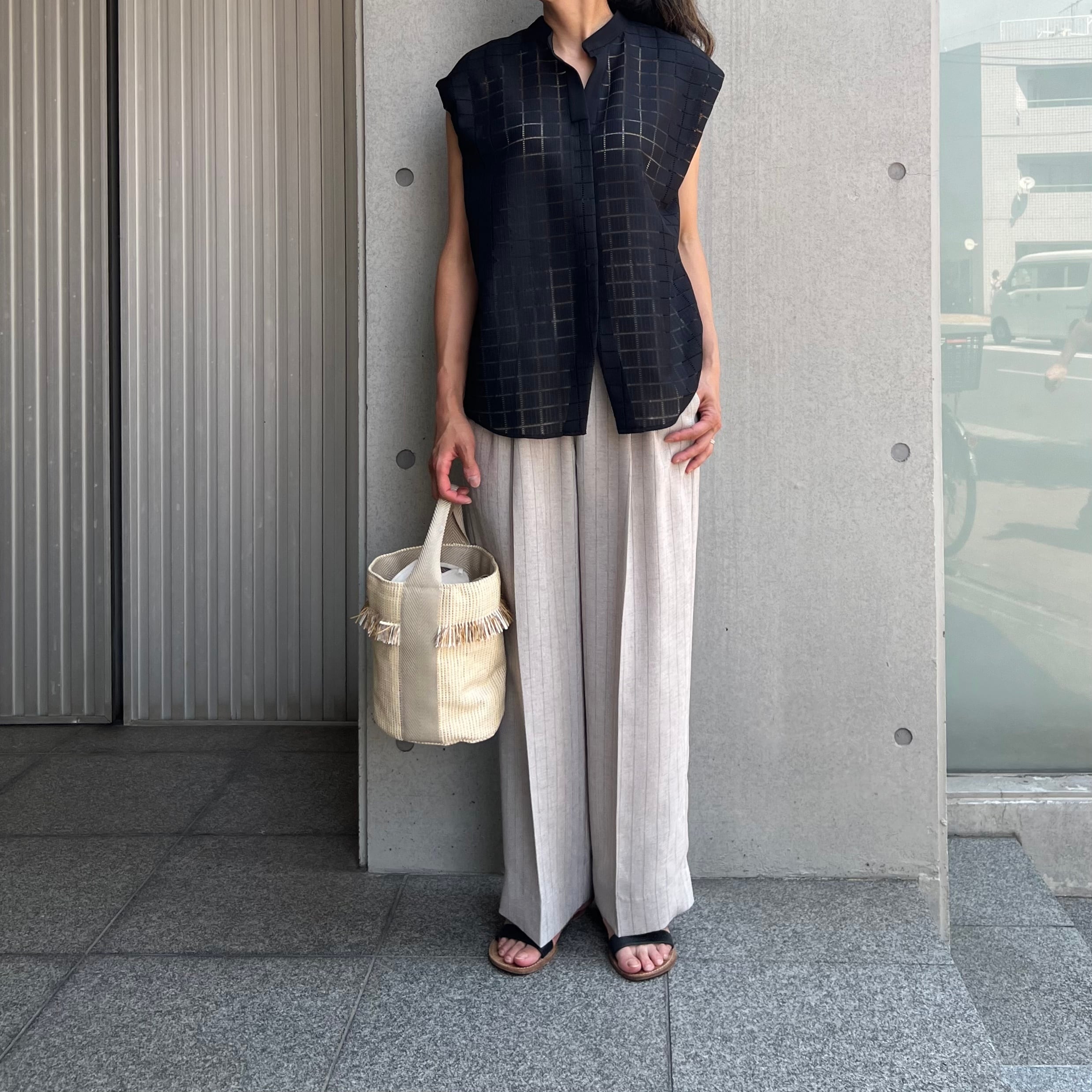 ノースリーブですが肩は隠れるので、ビジネスにも好印象です。