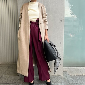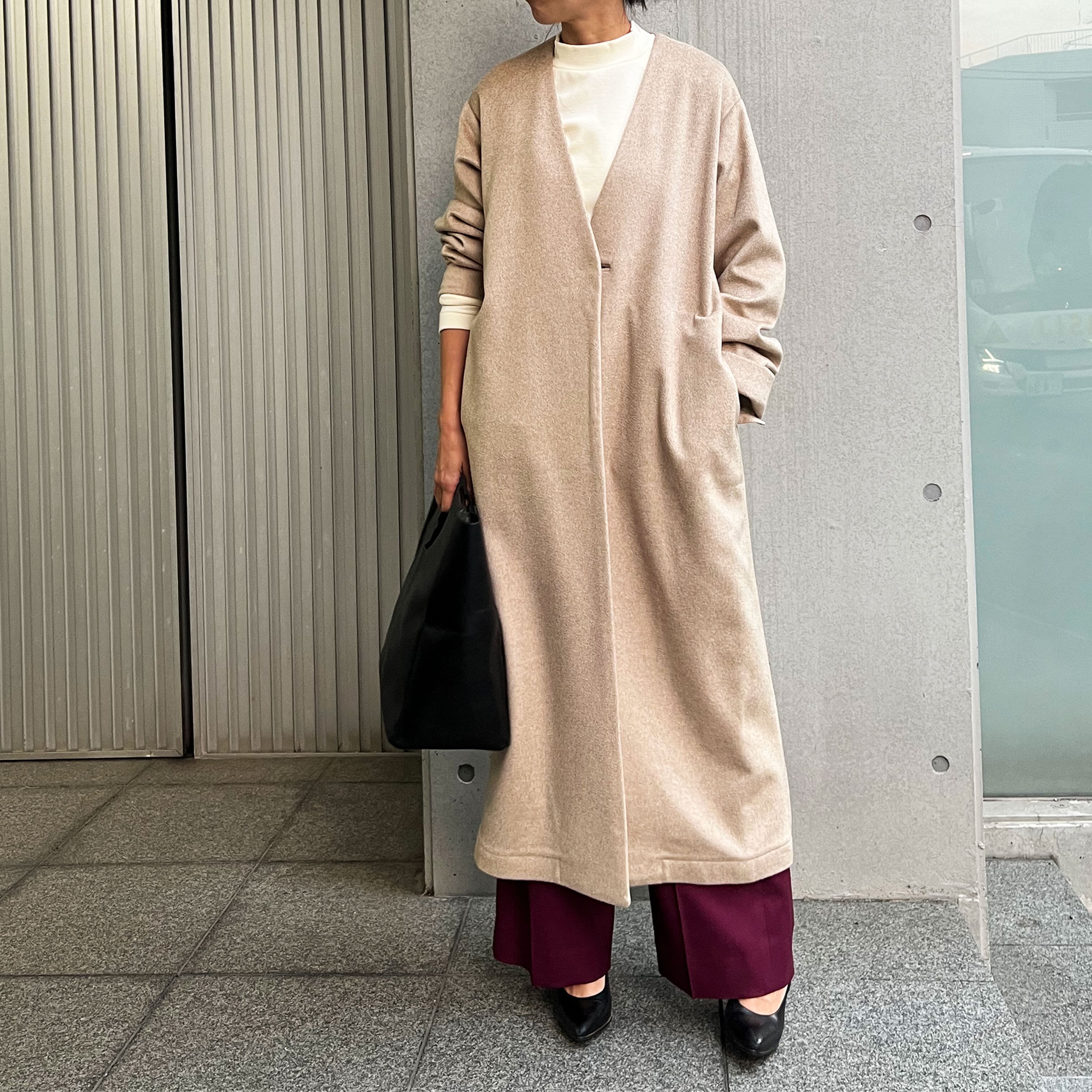 No Collar Long Coat/CashmereBEIGE