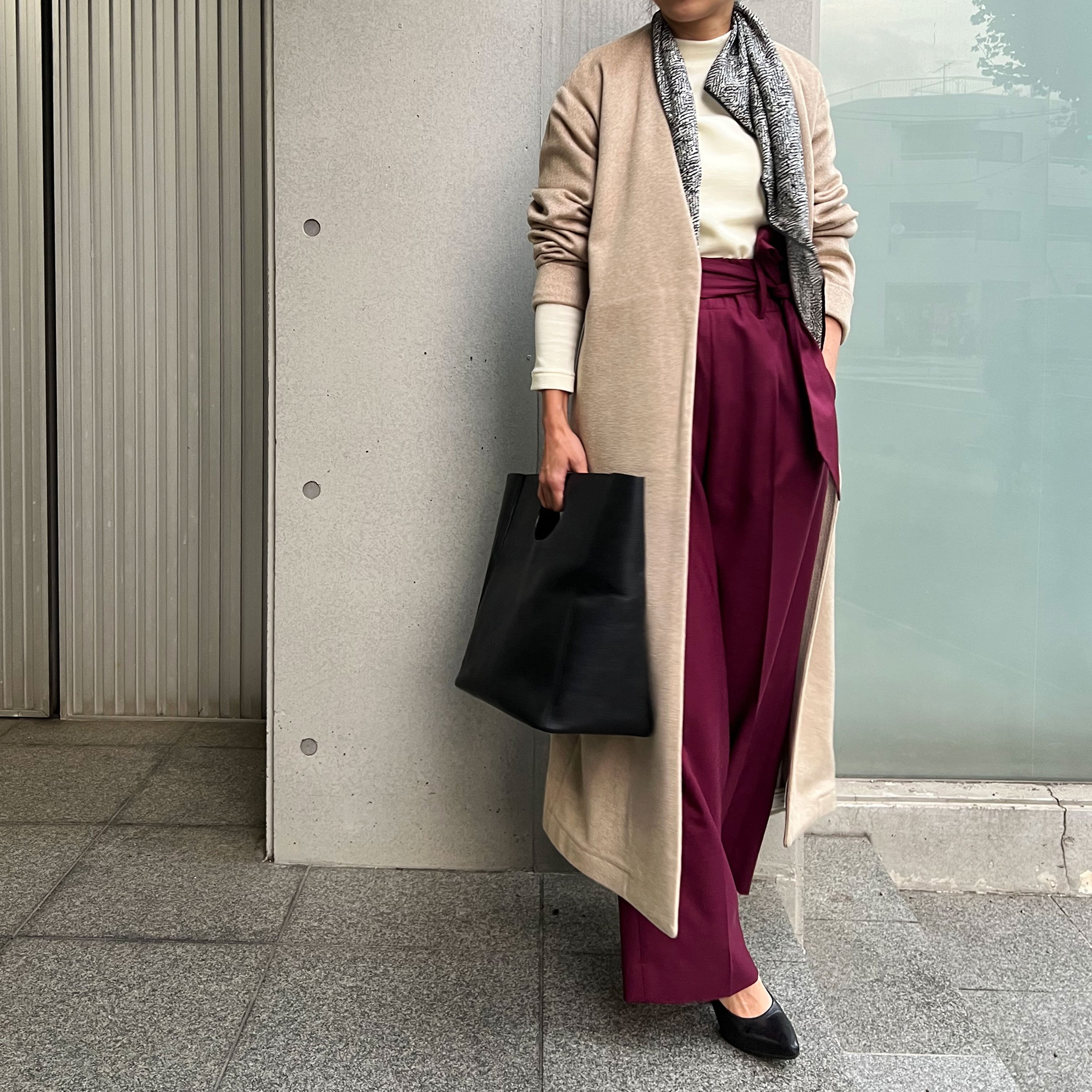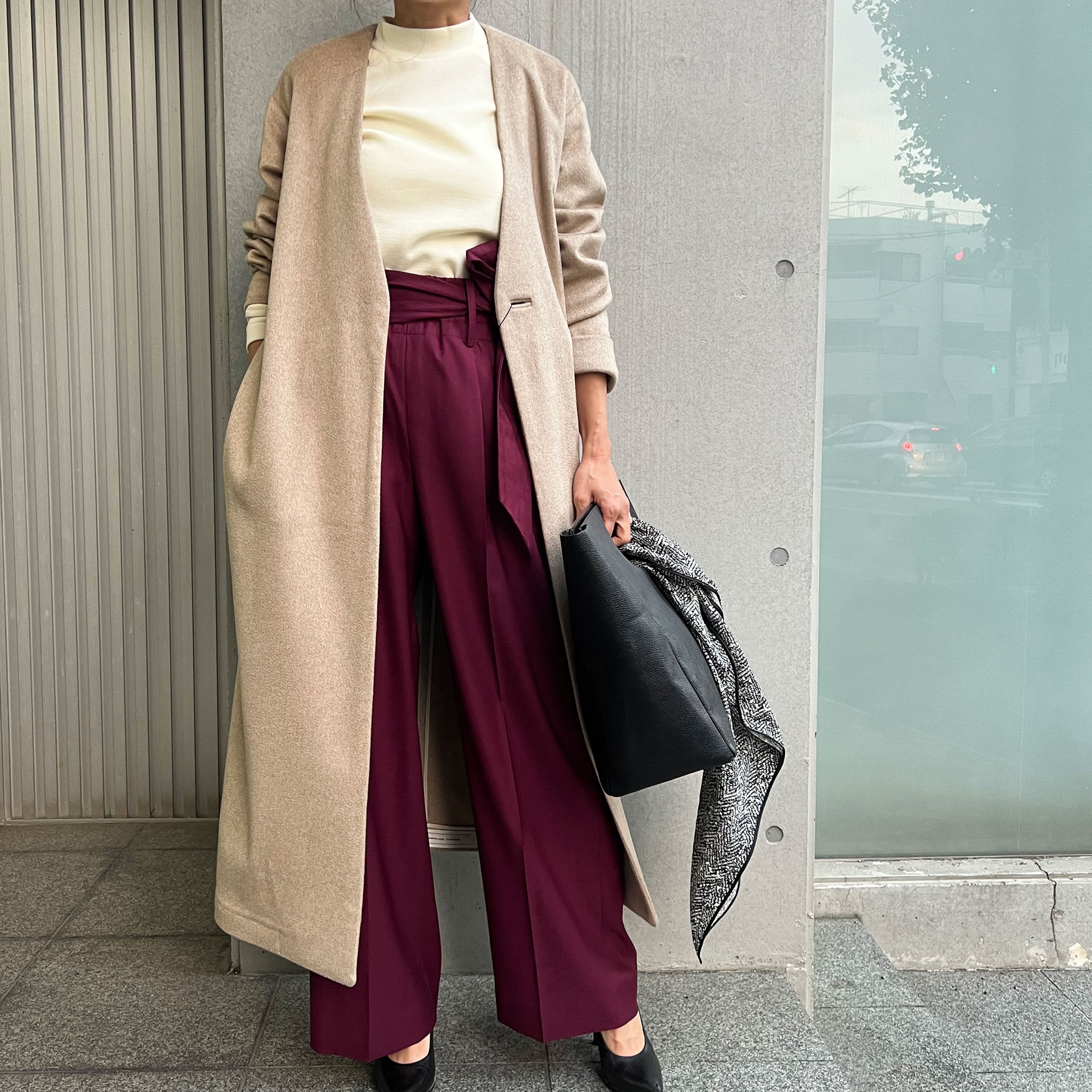 あらゆるシーンでご使用いただけるよう、ベーシックな見た目にこだわりました。合わせるトップスはタートルネックの上などに合わせることをお勧めしますが、シャツでも、ニットでも相性はいいです。ボトムはワイドパンツでもスリムでも選びません。また、カジュアルなデニムでも、通勤スタイルでも、フォーマルなシーンでも万能にご使用いただけます。シンプルな分、スタイリングのアレンジを楽しんでいただけるように、いろいろな部分にこだわりを込めています。別売りのライニングを取り付けることが出来るように、内側にはファスナーを付けています。(ライニングは別売りです。)