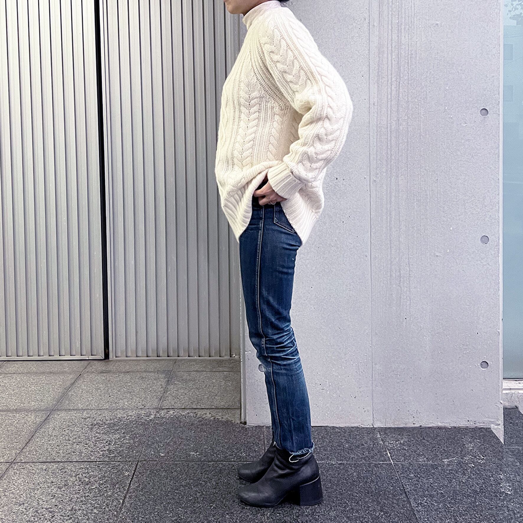 しっかり感はありますがカシミヤなので、重く感じられません。厚手のセーターのチクチク感が苦手な方でも、気にせず着ていただくことができます。